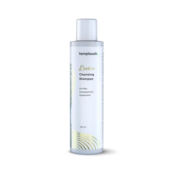 Hemptouch Revive Cleansing Shampoo on hiuspohjaa tasapainottava ja syväpuhdistava shampoo, joka poistaa tehokkaasti ylimääräisen talin, tuotejäämät ja epäpuhtaudet kuivattamatta hiuspohjaa. Hellävaraista kookospohjaista tendisiä sisältävä shampoo vaahtoaa miellyttävästi eikä häiritse päänahan mikrobitasapainoa.