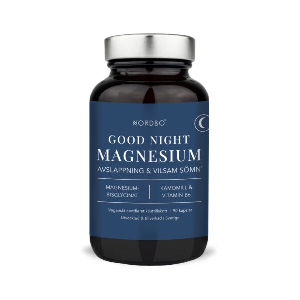 Nordbo Good Night Magnesium on suunniteltu tukemaan rentoutumista ja laadukasta unta. Yhdistelmä vatsaystävällistä magnesiumbisglysinaattia, rentouttavaa kamomillaa ja B6-vitamiinia tekee valmisteesta erinomaisen osan iltarutiinia.