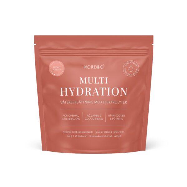 Nordbo Multi Hydration on monipuolinen ja makeuttamaton nesteytysvalmiste tilanteisiin, joissa kehon nestetasapaino tarvitsee tukea. Se sisältää luonnollisia mineraaleja ja kliinisesti tutkittua Aquamin-uutetta, raikkaalla vesimelonin ja mustikan maulla.