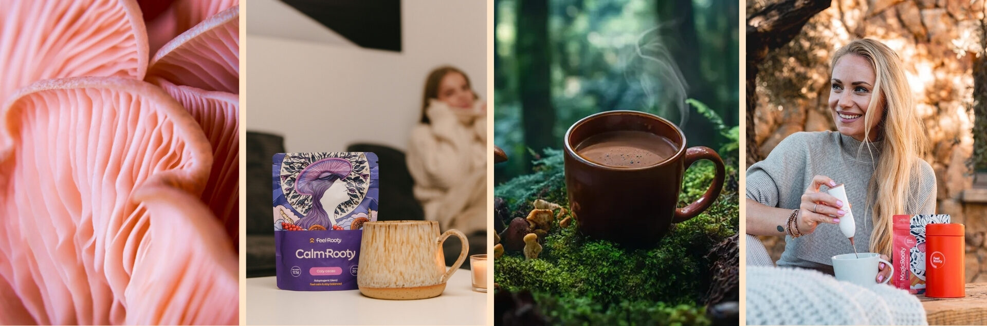 Feel Rootyn kaakaojuomat ammentavat luonnon viisaudesta: yrtit, funktionaaliset sienet ja aito raakakaakao kohtaavat yhdessä kupissa. Täyteläinen juomaelämys kutsuu hidastamaan, juurtumaan ja muistamaan, että pienistä rituaaleista rakentuu suurempi tasapaino.