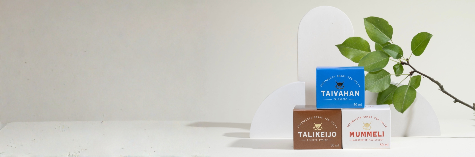 Kolme Cosmetics talivoiteet valmistetaan pienissä erissä Sipoossa suomalaisilta ylämaankarjatiloilta saadusta talirasvasta. Nämä tilat varmistavat, että eläimet laiduntavat luonnollisesti ja syövät ravinteikasta ruohoa, mikä takaa rasvan korkean ravintoarvon.